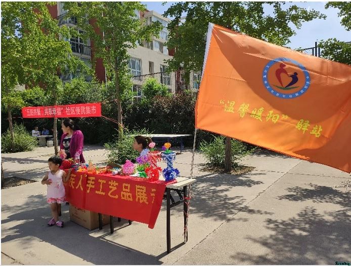 第二个环节是社区便民集市活动。此活动链接了王四营地区“五阳”队伍的成员,包含有“快乐骄阳”-宝贝二手市集、“魅丽艳阳”–巧娘义卖、“和谐向阳”–节能我行、“福满夕阳”–眼睛检查和“温馨暖阳”–口腔检查与残疾人作品展示等内容。在宝贝二手集市中,现场有10余组青少年家庭参加,通过旧物置换与义卖,丰富了角色体验,利于培养青少年良好的生活习惯。节能环保活动促进居民学习环保知识,引导居民垃圾分类投放,提倡低碳生活绿色环保。口腔和眼睛检查是残弱群体和60岁以上老人优先参加项目,为社区居民提供了解自己健康状况、学习爱护口腔和眼睛常识的机会。