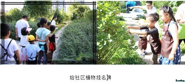 随后社工与小朋友们一起回顾了上次开展的“走进社区植物世界 变身小小植物学家”活动中学到的社区植物知识。“这个是冬青!”“这个是月季!””迎春花!迎春花!”看来小朋友已经掌握并认识了社区的植物。“我们去给它们挂上树牌吧,出发!”随着社工一声令下,小朋友们两两一组,认真地去完成这项任务。