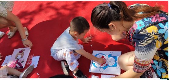 活动以“亲子促融”为主题,分为三个环节举行。首先,由低碳环保队员马春燕老师向大家介绍了纽扣画的制作及注意事项,并在旁协助各家庭完成画作。