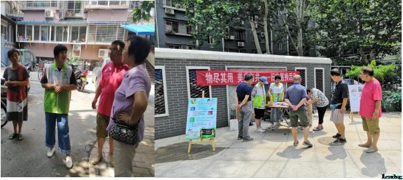 “小包,你看阿姨这个铁艺花架咱们后续能利用不,反正闲在家里也没用,今儿趁这个机会拿出来。”在绿色志愿者队伍、各楼门长历经一周的环保宣传后,7月10日,立德社工联合安贞里社区居委会开展了为期一天的提升环保意识主题活动,吸引了众多居民参与。
