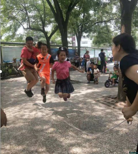 此后的团体赛中,“八人集体跳绳”和“团体拔河”更是营造了竞争与合作并存的有爱氛围,甚至还有家长抱着孩子上场的。孩子与家长喊着口号、各用所长、群策群力积极参与,现场特别热闹。