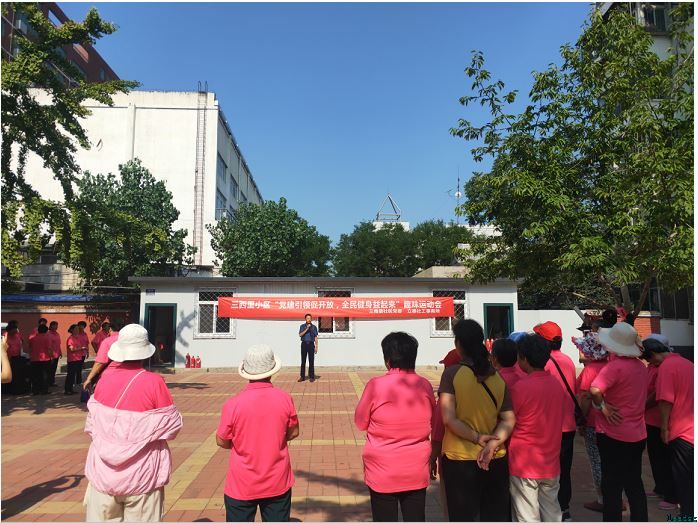 为充分发挥党员带头作用,加强党员队伍建设,增进党员和群众之间的联系,2019年7月12日上午9:00,三南里社区“党建引领促开放,全民健身益起来”趣味运动会在三西里小区广场拉开了帷幕。本次活动由三南里社区党委主办,立德社会工作事务所承办,共70余位党员与志愿者参与其中。