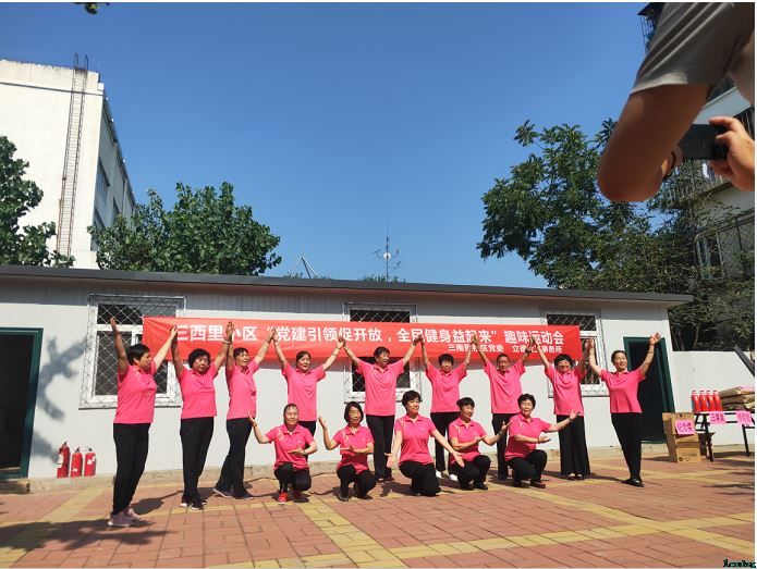 三南里社区党委书记刘雪飞、党委副书记赵今和三西里小区服务站站长王秀丽莅临现场指导。活动开场前由社区领导致辞,为社区的老党员与志愿者们送上美好祝福,预祝今天的趣味运动会顺利开展。