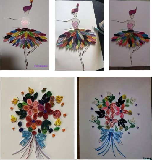 活动开始,老师认真细致地讲解衍纸制作过程;起初,大家似乎没有信心,觉得制作步骤复杂,不知如何动手操作;在老师的耐心指导下,大家慢慢的熟练起来,并赋以大胆的想象,将一根根普通的纸条通过耐心地卷、捏、拼贴等步骤,制作出了一幅幅漂亮的作品。家长忙着给孩子和作品合影留念,开心的笑容洋溢在每一个人的脸上。