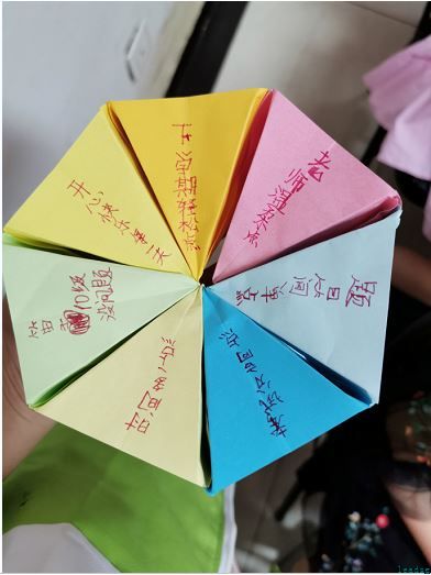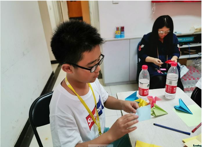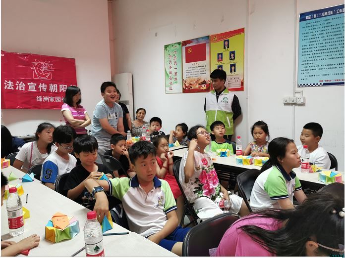 在讲座开始前,主讲老师鼓励小朋友们分享他们以往暑假的趣事以及对今年暑假的愿望。在老师与小朋友们良好互动的同时,社工给每位小朋友发了彩纸和彩笔,随后带着大家一起制作愿望花。在老师和现场工作人员的协助下,每位小朋友都完成了作品,并在作品上写下了今年的暑期愿望。