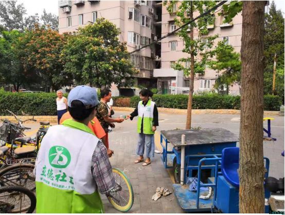 夕阳西下,居民们渐渐散去,社工和居委会的工作人员仔细整理着收集来的堆物堆料的数量和破损程度,安排之后的回收事宜。社工们还给辛勤搬运自行车的环卫工人递上了水,感谢他们的付出。