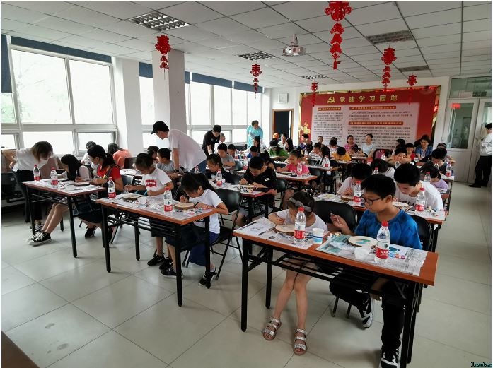 此次活动以木头年轮和十二生肖为契合点,引导青少年认识和熟悉木头的年轮,了解年轮的诸多功能,结合自己所属的生肖,选择适合自己的方式进行创作。现场来的40名孩子中,年龄跨度比较大,小到一年级,大到高中二年级。老师采用两种方式带孩子们画画:年龄小的可以借用复写纸临摹后再上色,鼓励有绘画基础的、年龄稍大的自己创作。