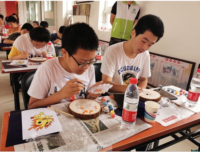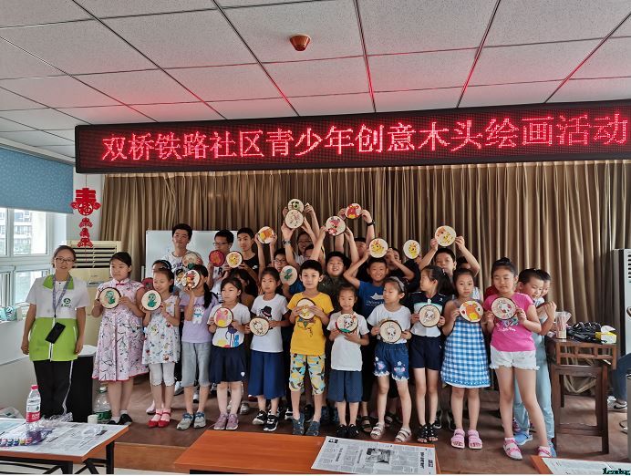 为丰富社区青少年暑期生活,提高动手制作能力,双桥铁路社区联合立德社工于2019年7月19日上午,开展“用年轮,记录成长的故事”木头创意绘画活动,共吸引40余名青少年参加。