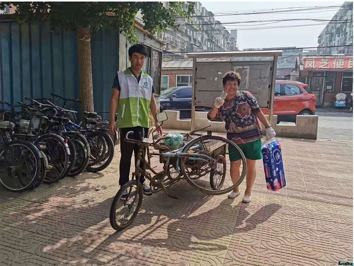 活动现场还组织了自行车置换活动,活动前期立德社工链接社会资源,找到回收破旧自行车的机构,将社区居民废弃自行车进行置换。既可以解决破旧自行车在家中占空间、没处放的问题,又可以实现循环利用减少资源浪费。