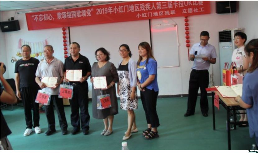 为深入学习贯彻“习近平新时代中国特色社会主义思想和党的十九大精神”,小红门地区残联携手立德社工积极开展“献礼新中国成立70周年、建党98周年”的七一“党建月”活动,鼓励地区残疾人重温红色记忆,感恩党的关怀。一场专为地区残疾人准备的红歌盛宴席卷而来,小红门地区第三届卡拉OK决赛正式开始。