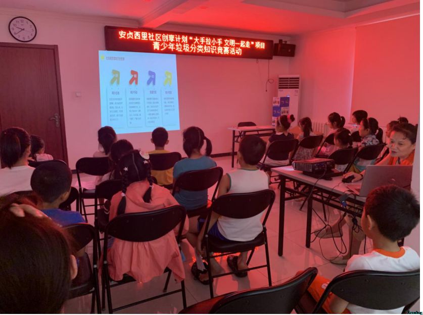 早在7月23日,社区已经为30多名青少年开展了“垃圾分类知识竞赛”活动,活动以PPT的形式介绍了垃圾分类的相关知识,并现场模拟了垃圾的正确投放方式。这场特别的知识竞赛,有助于激发社区青少年的环保意识和责任意识,鼓励他们利用暑期时间积极参与社区活动,提升他们对社区的认可度和归属感。
