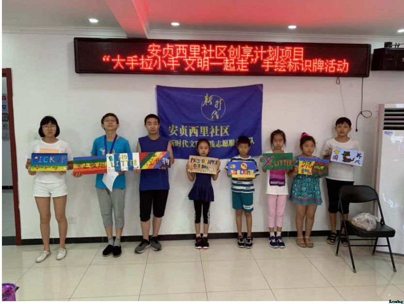 社区环保伴我行。7月31日上午九点,安贞西里社区组织青少年开展社区创享计划——社工提案“大手牵小手,文明一起走”之手工绘制标识牌活动。活动旨在通过青少年动手制作环保标识牌,提升他们的环保意识,带动更多的青年家庭参与到社区建设中来。