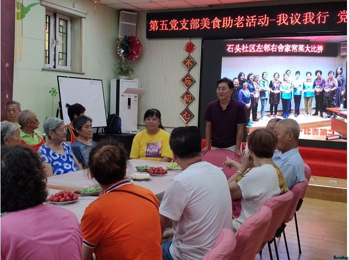 在鸟语蝉鸣、莲叶满池的季节,多位社区居民早早地来到了老街坊乐园,喜洋洋地开始了清晨的忙碌。为了充分展现对社区老人的关怀、塑造温馨欢乐的社区氛围、增强社区内部的和睦友好,石头社区第五党支部于2019年8月6日在老街坊乐园举办美食助老活动。