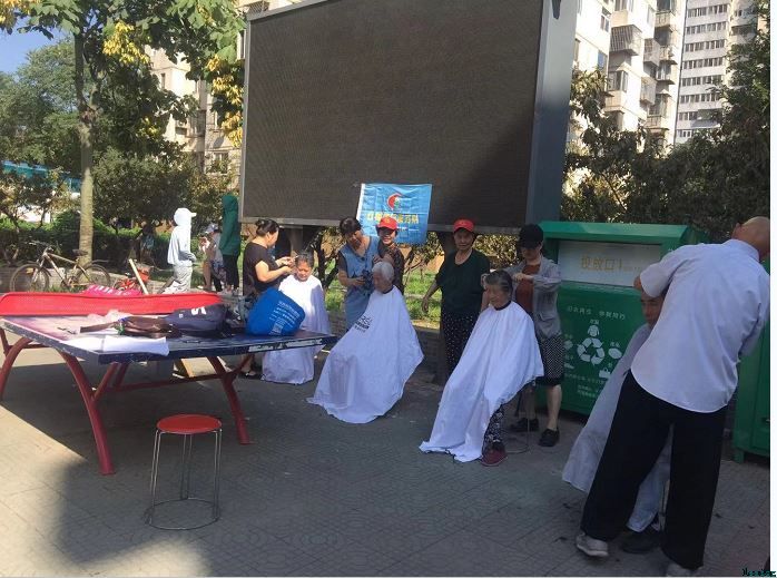本次义务理发共分为两个阶段,9:00——11:00小广场集中理发;随后为之前拨打服务热线电话登记的居民上门理发。
