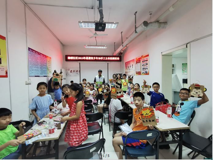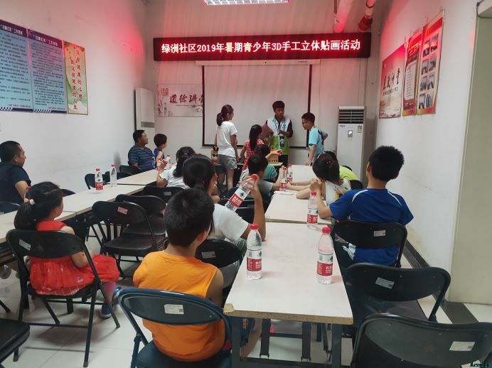 2019年8月19日下午,绿洲家园社区开展了一次暑期青少年3D手工立体贴画活动。本次活动旨在提高青少年的动手能力,帮助孩子们从闲散的暑期生活状态逐步过渡到有序的学习状态。