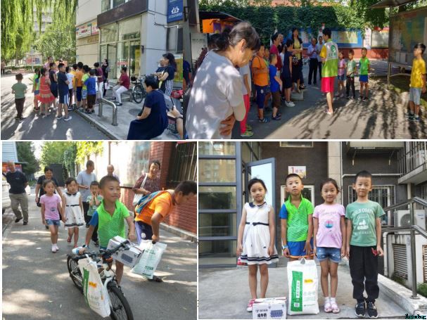早上九点整,16组亲子家庭来到了社区居委会,社工将其分成4组,两组由社工带领,两组由居民骨干带领。小朋友们争先恐后抢着提牛奶和面粉,踏上了走访慰问的征程。