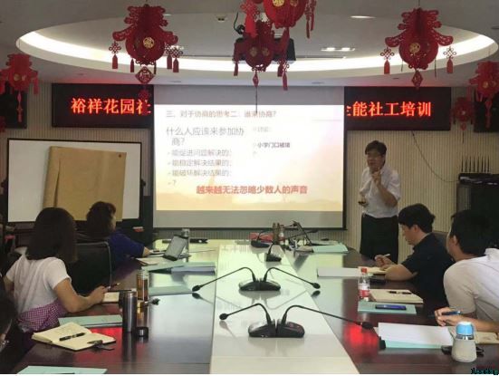 2019年8月28日,裕祥花园社区党委邀请北京农业职业学院副教授李凌老师,就“如何开好社区议事会——促参会议的方法与技巧”进行专业培训,目的是提高社区工作者组织开展议事会的能力。