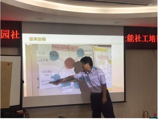 本次培训通过大量的案例,如邮箱的安装、社区垃圾桶的安置、硬化改成停车位等问题,引导大家思考如何进行前期调查、氛围营造、场地布置、议事程序的设计、议题的确定、疏解居民情绪等。李老师围绕“如何让居民达成共识”这一重点作了详细阐述。