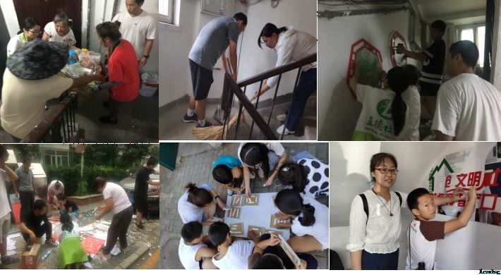 下午,大家聚集在3号楼前,分工后,纷纷拿着扫把、抹布等清洁工具开始了对楼道进行大清理。青少年在家长陪同下积极参与楼道清理、相框上墙工作。用了近两个小时,在社区居民、楼门长、社区青少年和物业的共同努力下,普通楼门摇身一变为特色楼门:楼道的堆物堆料不见了,楼道变得更干净了。在场居民表示:“走在楼道里就能感受到浓浓的传统文化气息,通过宣传教育,咱们的邻里关系更和睦了,楼道也整洁了,真是挺好!”