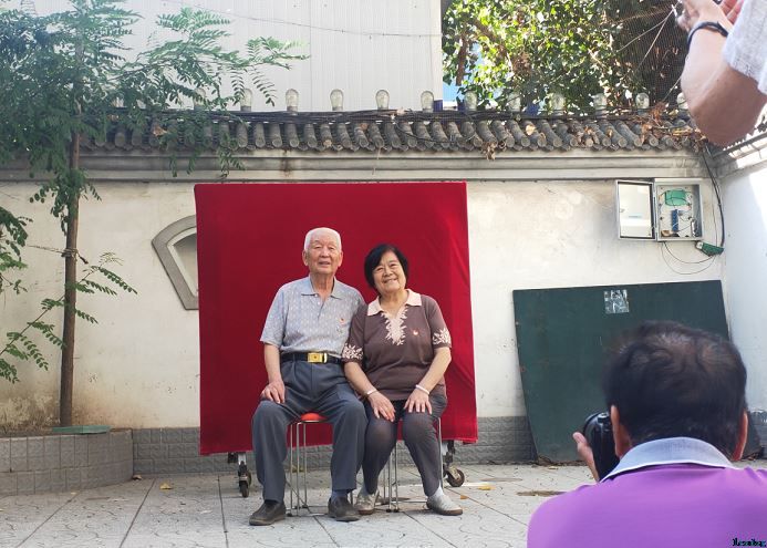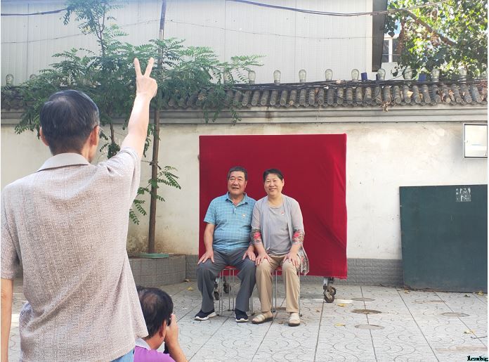 由于资金有限,马阿姨将活动室立德乒乓球台立起,罩上一层红色绒布作为背景。现场的来拍摄的夫妻中有为社区服务多年的双党员夫妻家庭,也有一直为社区工作尽心尽力的退休楼长夫妻,还有结婚50多年的金婚老夫妻。借助创享计划这一平台,马阿姨策划为社区老党员和志愿者服务的金点子,通过“党员之家放光辉”这一项目逐步落实。