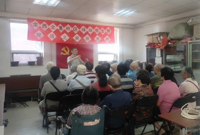 2019年9月2日上午9点,定西北里社区绿岛苑小区工作站旁边的活动广场上架起了一个简易的拍照背景板,这是给多年来为社区任劳任怨服务居民的老党员和志愿者们搭建的拍摄场地。牵头人则是参与今年创享计划的“党员之家放光辉”项目组的马逢颐阿姨和罗绍祖叔叔。