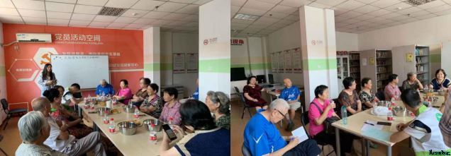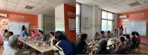 “咱们可以追忆过去,聚在一起玩玩以前的游戏和文体活动”“咱们也可以去红色教育基地参观学习”“也可以举办一个访谈会,聚在一起说说过去的故事”“还可以弄个老照片、老物件展览”……有的阿姨建议可以办个集体生日party,为祖国朗诵、歌唱。大家边吃边谈,各抒己见,提出了一些相当好的建议。同时康中秋老师还在会议上为大家朗读了自己写的故事,讲述了自己当兵时期的经历,赢得了大家的掌声。