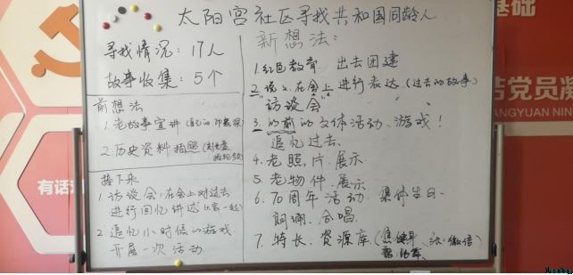 首先由提案人王仲熙老师向大家解释共和国同龄人的来历和活动计划及相关事宜。之后,主持人提出本次议事会的目的:是继续采用故事征集和历史资料拍照进行宣讲的方式?还是寻求别的途径?大家一开始保持沉默,但随着社工的一步步引导,加上魏育喻阿姨的带头发言,叔叔阿姨们的积极性都被调动起来,你一言我一语的说了起来。