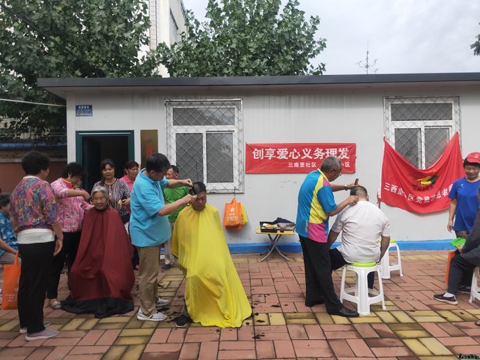 为进一步丰富社区敬老爱心服务的内容,营造社区敬老爱老的良好氛围,2019年9月11日上午9时,三南里社区将社区爱心梳妆理发美好生活项目与为老助残项目相结合,在三西里小区健身园开展社区创享计划活动,。