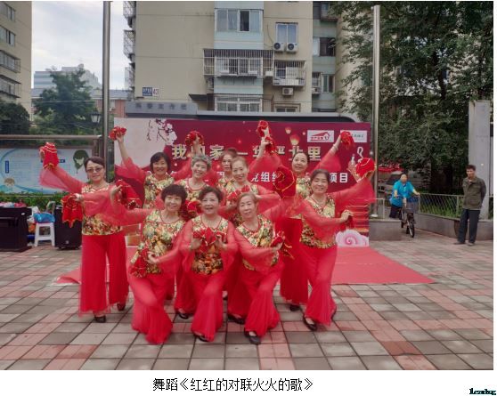 接下来,社区舞蹈队的节目《红红的对联火火的歌》的出场赢得了大家热烈的掌声。掌声未落,社区合唱团现场钢琴伴奏合唱的《我爱你中国》又吸引住了居民的心,在一片片叫好声中结束。