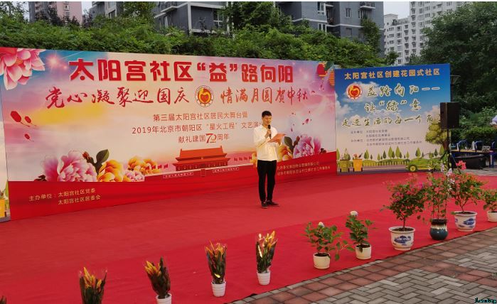 为丰富和活跃社区居民的精神文化生活,营造文明祥和的节日氛围,值此中秋、国庆佳节来临之际,9月11日晚上六点,“党心凝聚迎国庆 情满月圆贺中秋”献礼建国70周年暨太阳宫社区第三届居民大舞台文艺演出拉开帷幕。