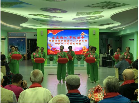 孙文虎校长代表八十岁以上党员发言,发表了自己对于“不忘初心,牢记使命”的想法与感慨,表达了自己坚定不移跟党走的决心和信念。在孙校长的带领下回顾这一路走来祖国的变化,全场人员为之动容,心生对祖国强大的自豪感。最后,由老来乐志愿者党支部委员刘福生代表全体党员发言,为八十岁以上老党员庆生演出正式开始。