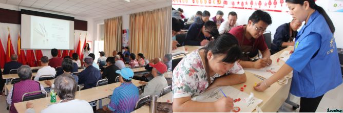 一幅幅图画由雏形逐渐变成品。每个人的图画各有特色。别看叔叔们平时大大咧咧,绘画上反而比阿姨们更细致。