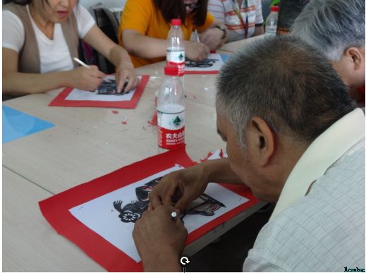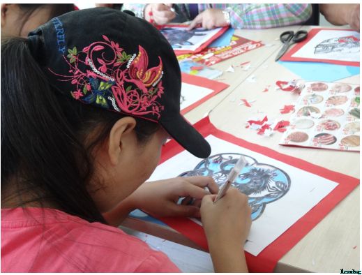 后期,工作人员会将大家的剪纸作品进行装裱,并在温馨家园活动室进行作品展示。