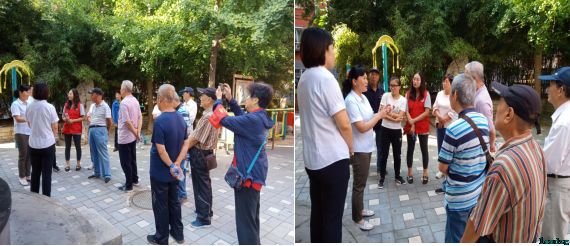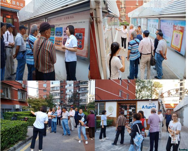 一路走来,我们来到了吉庆里社区8号院民航家属楼,居民骨干张云芳阿姨分享了如何动员局长级干部参与活动,如何带领居民改变自己的楼院。居民从不愿参与活动到不给分配任务不愿意的变化过程,大家共同为活动做准备,习惯了从活动前的筹备会到活动开展,再到活动后的总结会这样的流程,每次活动都有新的收获和成长,以及在这个过程中积累的一些经验。