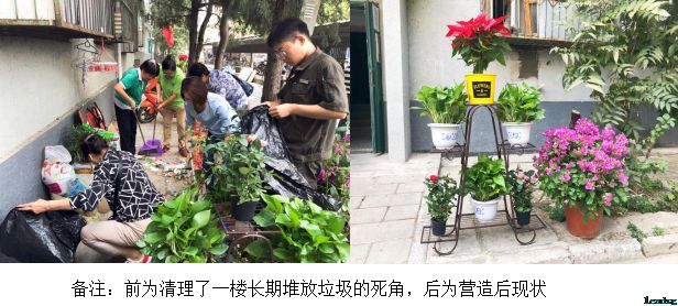 此次活动之前,立德社工联合社区人员,对其进行入户劝导,聆听了老人家的真实想法——每天整理整理自己的“堆物”,觉得挺充实的,还能卖个钱,习惯了,并不是故意为楼院造成困扰。据此,我们跟老人家解释此次环境营造活动会在楼前摆放一些漂亮的花,而且一单元前的花可以由老人家认领一盆,偶尔浇浇水、修修枯枝等,既能打发时间还能每天看着漂亮的花,心情肯定会不错。老人家终被打动,甚至还表示跟大家一起清理她的“堆物”;但是考虑到她的身体状况,最终还是由志愿者们代劳,进行了清理和绿植栽种、摆放。