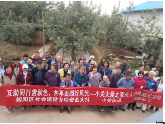 金秋十月,为了让小关大爱之家的老人们亲近大自然,欣赏田园风光,体验采摘的乐趣,丰富老人们的空闲生活,2019年10月10日,小关街道联合立德社工在“英龙”苹果采摘园为大爱之家的老人开展了主题为“互助同行赏秋色,共享田园好风光”——小关大爱之家老人户外减压活动。小关街道计生办李威威科长百忙之中抽出时间参与了此次活动,陪伴老人们一同赏秋。