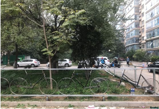 消防通道人来人往,每位路过的社区居民都会驻足观看,并夸奖西二居委会和立德社社工做的好,很有创意,切实做到了废旧自行车取之于民、用之于民!为社区环境的美化提升做出了很大的贡献!