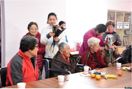 2019年10月26日上午,创享提案居民李秀英在老年驿站为社区老人集体过生日。李阿姨为老人们准备了生日蛋糕,现场人员集体高唱《生日歌》,纷纷向老寿星行寿礼;社区工作者和志愿者为寿星们送上了鲜花。吃着甜甜的水果,寿星们乐得合不拢嘴,切身感受到了党和政府、社会及家庭的温暖。