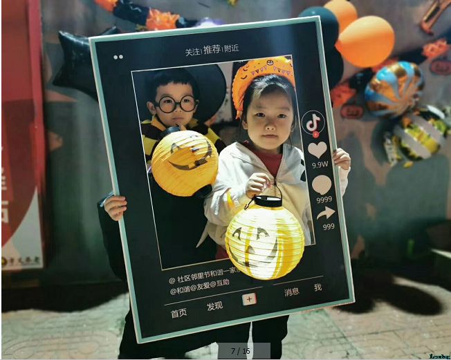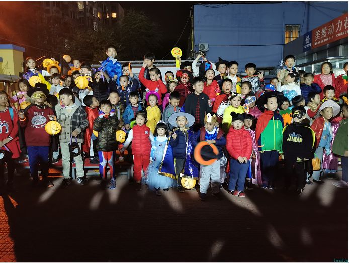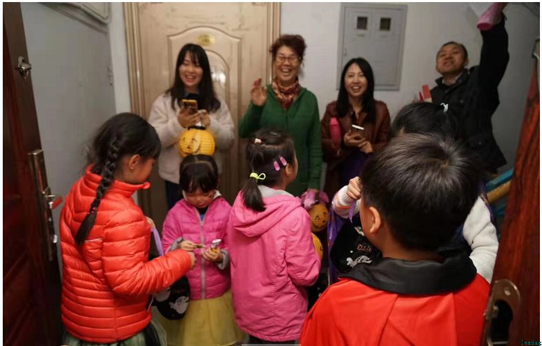 孩子们提着明亮的南瓜灯笼,有序地排成队伍在社区楼宇之间穿梭,为寂静的夜晚增添了欢乐与活力;提前在家中备好糖果的志愿者们早早地等待着孩子们上门,为孩子们欢度节日的同时也增进了邻里之间的情谊。