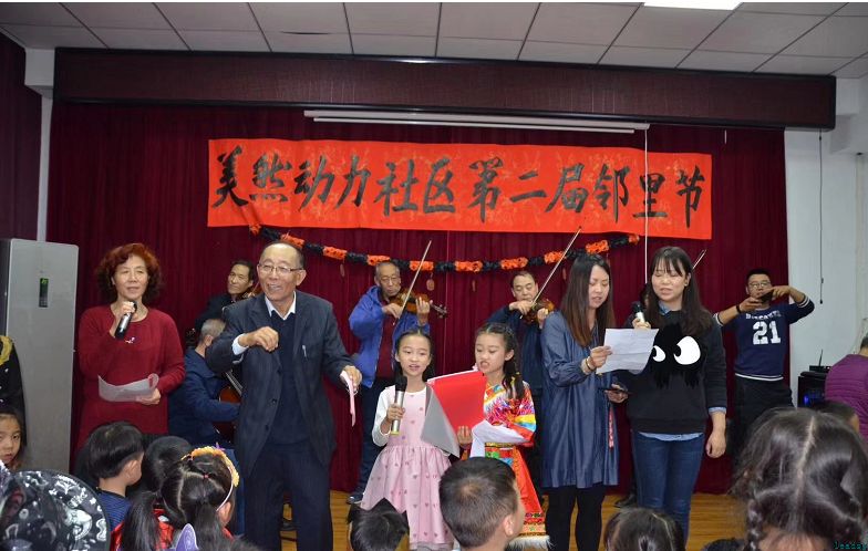随后是由社区志愿者代表上台向在场人员发出社区环保倡议,赢得了到场居民的一致肯定。接下来便由社区文艺团体和社区多才多艺的小朋友们为大家表演精心准备的节目。孩子们为大家相继带来了琵琶独奏《步步高》、热情舞蹈《西班牙之火》、父子逗趣相声《反正话》、武术、评书等精彩表演。最后社区老、中、青三代居民志愿者代表上台带领大家一起合唱《我和我的祖国》,社区艺术团志愿者默契配合现场伴奏,小朋友们在台下高声应和,活动气氛达到高潮。