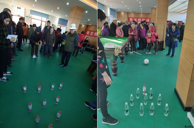 运动会共设了六个项目,分别是保龄球、投沙包、夹乒乓球、拍篮球、拼图、套圈等。六个比赛项目同时进行,参赛人员根据自己的喜好及身体状况选择参赛项目。