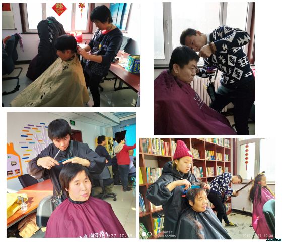 理发区域邀请了3名沙宣理发的志愿者以及1名社区志愿者,残障人士按照签到顺序排队等候。理发师针对“顾客”的需求,耐心为大家理出理想的发型。理完之后,大家的精神神顿时就不一样了,相互之间夸赞不断,看来心情很美哒!