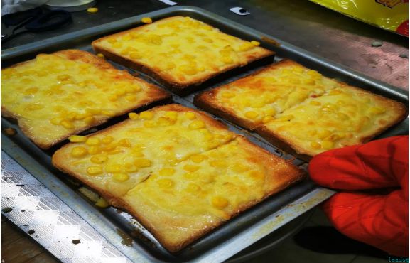 顾名思义,家庭版披萨——简单、方便、实用,自己可以在家制作。饼底做起来费时、费力?那我们就用面包片代替;自己做的披萨总是没有披萨的味道?老师拿出她的秘密武器“披萨草”。当然,除去这些,番茄酱、沙拉、洋葱、彩椒、培根和芝士也是做出色香味俱全的披萨所必不可少的原材料。这些材料经过叔叔阿姨们的动手加工,一个个彩色的小披萨便呈现在大家眼前了。