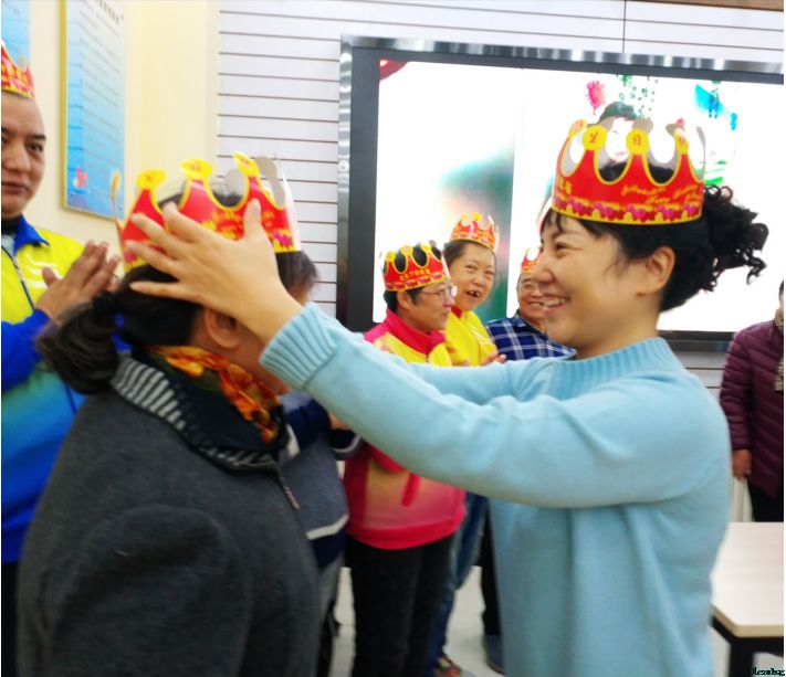 暖场视频中一张张帅气美丽的写真照,是社工们搜集很久的成果,希望能够将寿星们最动人的一面记录在每个人心上。随着大家的呼声,13位寿星陆续上台,接受温馨家园老师们的“授冠”仪式,带上生日帽的那一刻就是今天享受祝福的人。大家手工3D贺卡,将祝福寄托在那张卡纸上,封面贴一束干花,让彼此的祝福更有了仪式感。