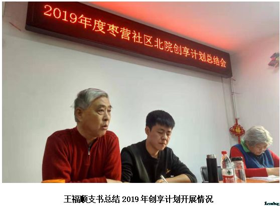 活动伊始,枣营社区北院支部书记王福顺首先发言:“2019年,枣营社区北院在创享活动中取得了可观的的成果,服务内容涉及社区环保、社区安全、社区文化等多种类型,并发掘培养了一批居民骨干,带动更多的居民和社会力量参与到楼院治理中来。下一步党支部将结合居民所需,不断扩大服务力量和服务内容,更好的为居民服务,争取把枣营社区北院打造成宜居、多彩、和谐的美丽家园。”
