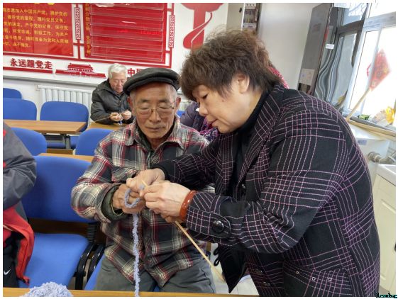 2019年12月3日,残疾人日活动当天,香山街道残联组织辖区内30余名残疾人及志愿者开展“冬日温暖送上门”编织活动。助残志愿者王老师前来教授志愿者朋友们织围巾。