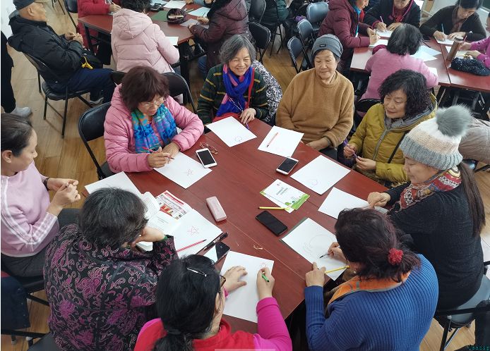 张老师将现场居民分为四组,每组选出组长,然后以一套简单有趣的手指操,成功调动了大家的积极性,也打破了在场所有人之间的陌生感,拉近了彼此间的关系。