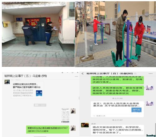 精细管家-双线监测排查,网格精细管理。社区10余名社工网格员化身精细管家,开启24小时工作状态,入户排查社区总户数1227户,对于联系返京居民,每天联系记录身体健康状态,做到了“排查全面化、关注重点化、跟进个性化”。运用条幅、电子屏、公众号、宣传栏等渠道加强防疫宣传。线上通过网格群开展疫情舆情防控、监测、处理、跟进、反馈的快速响应工作机制。