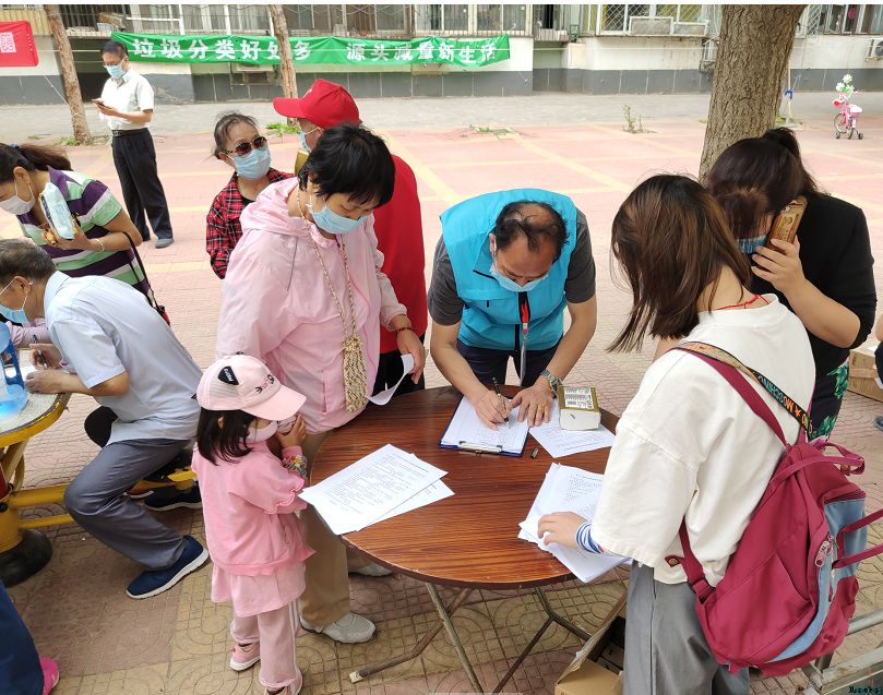 在此过程中,党员志愿者以身作则,发挥模范带头作用,引导其他居民有序填写,对那些手写不便的老年居民,则帮助解读问卷;同时,他们兼以指导员和宣传员,对不了解垃圾分类的居民,进行分类政策、分类标准的讲解,并鼓励他们在家学习分类。