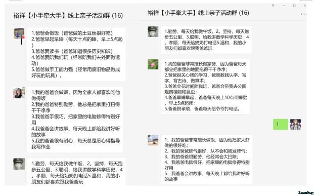 活动最后,每组家庭纷纷在群里分享了一起制作父亲节作品的亲子合照,画面非常温馨。